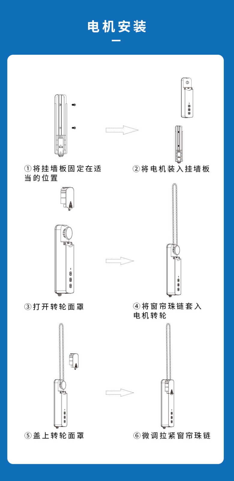 此產品適用于拉珠卷簾,可以把傳統(tǒng)的拉珠卷簾改變?yōu)橹悄茈妱哟昂煟惭b簡單,操作方便。安裝后可通過遙控器、語音、手機APP等控制窗簾升降。